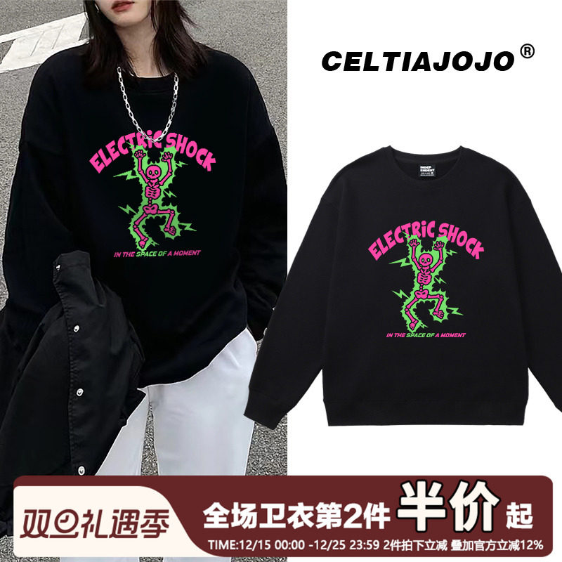 C奥特莱斯长袖圆领卫衣女2025秋冬季宽松情侣连帽卫上衣男女同款