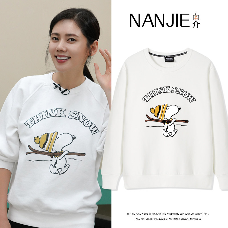 精梳棉正肩白色圆领卫衣女宽松春秋新款韩版休闲百搭洋气上衣外穿