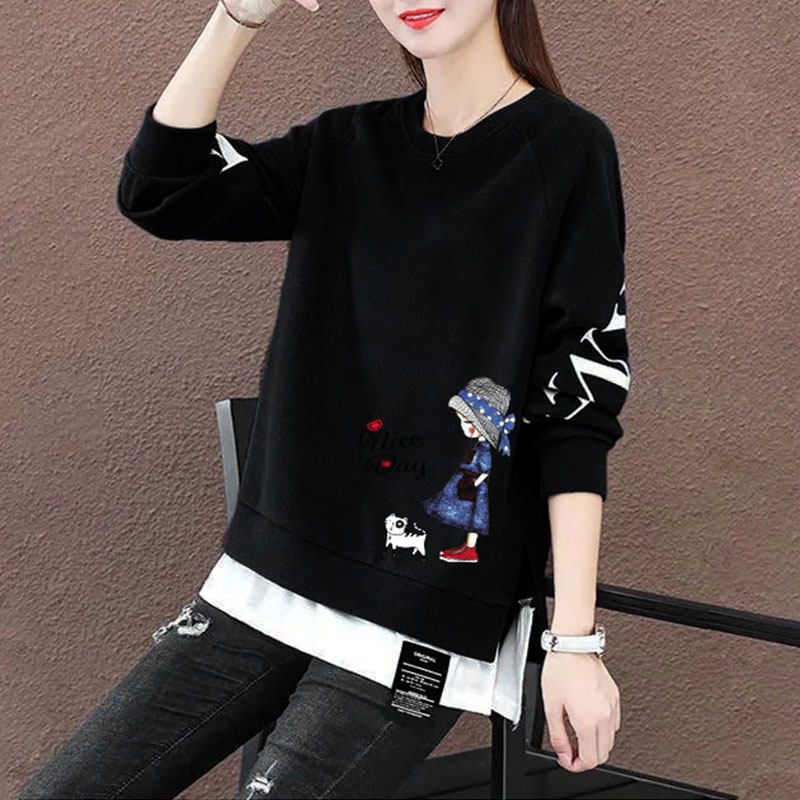 2025秋冬季新款卫衣女韩版宽松休闲大码女装长袖假两件上衣外套潮