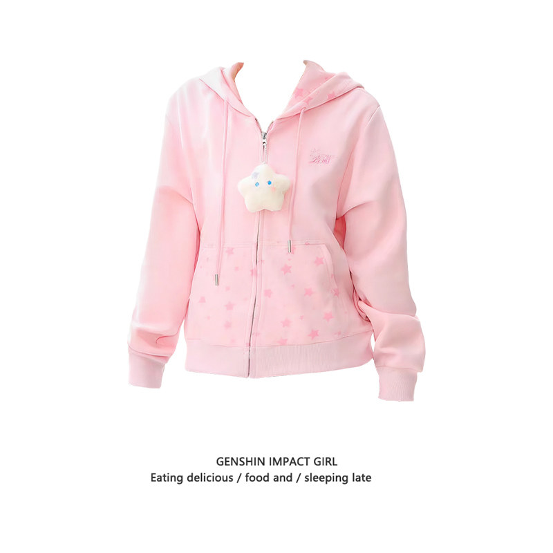 秋冬季甜美星星挂件印花连帽拉链开衫卫衣女韩版宽松百搭显瘦外套