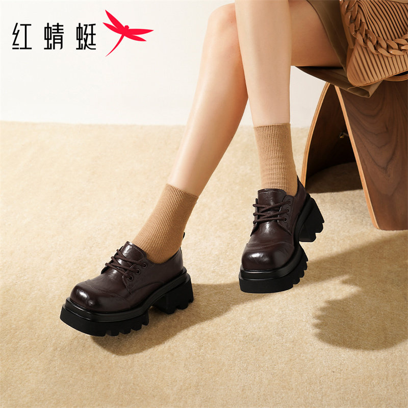 红蜻蜓学院风单鞋女鞋2026新款厚底方头小皮鞋jk系带英伦风乐福鞋