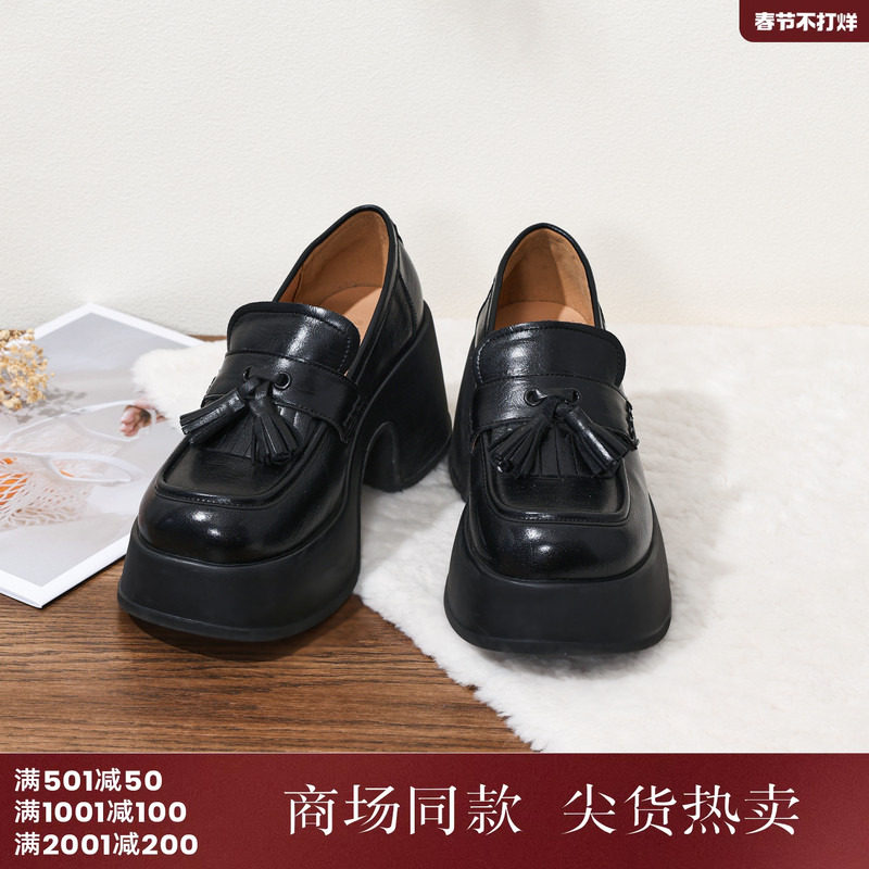 西町村屋学院风单鞋女秋冬季新款复古感流苏厚底乐福鞋XAAD20018
