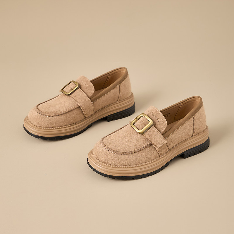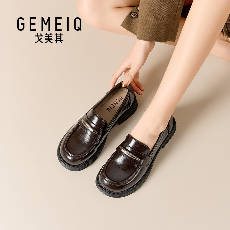 戈美其乐福鞋棕色小皮鞋2026年商场同款女鞋百搭一脚蹬学院风单鞋