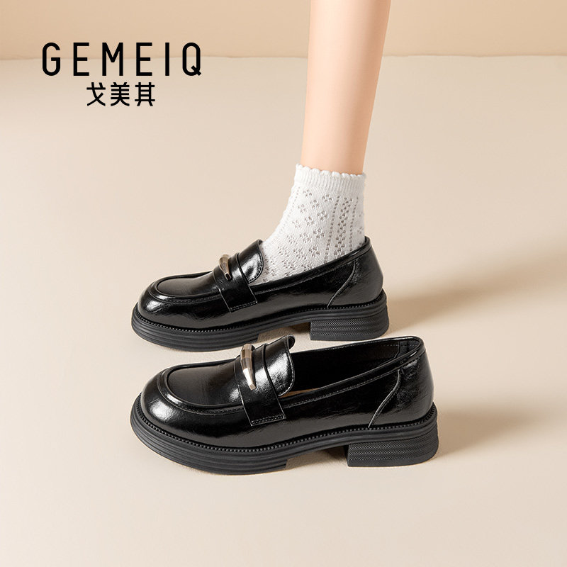 戈美其2025秋季新款漆皮小皮鞋英伦风乐福鞋厚底女款学院风单鞋子