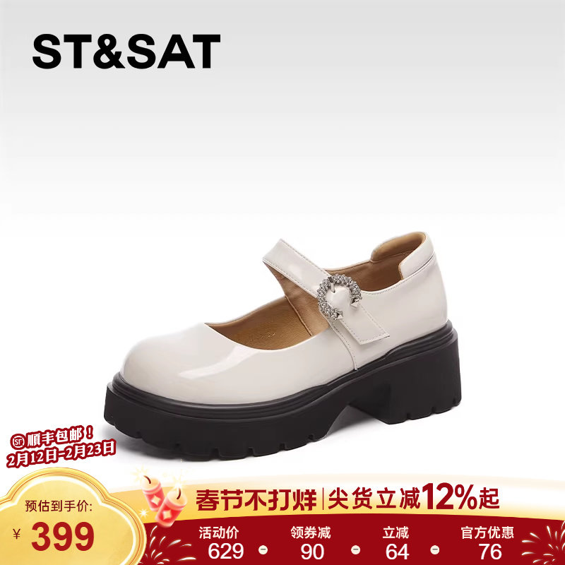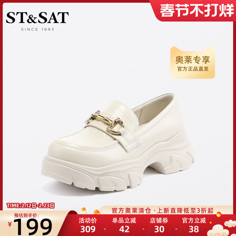 星期六乐福鞋春季新款小白鞋复古厚底学院风单鞋女SS31111027