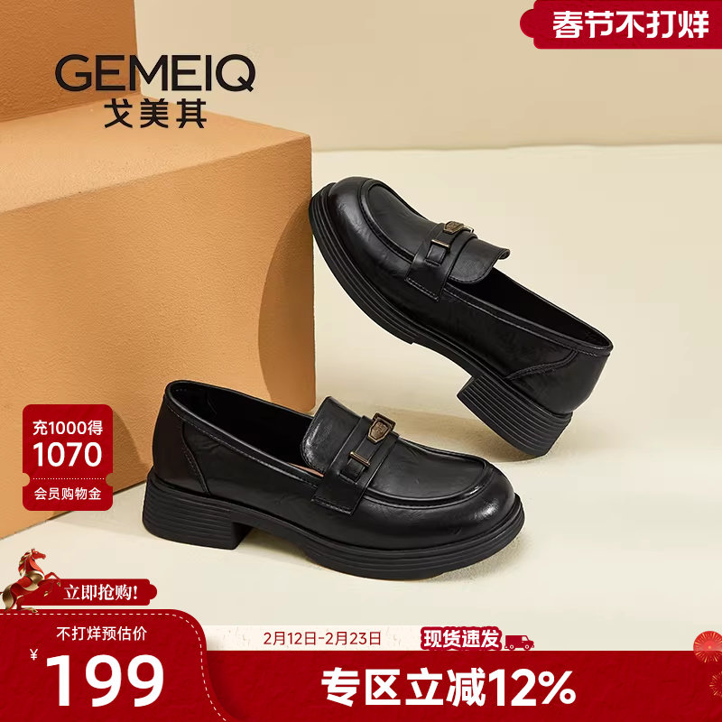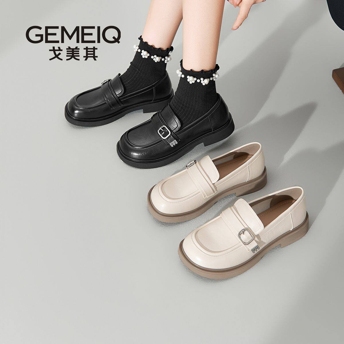 戈美其乐福鞋女春季新款学院风单鞋舒适百搭显瘦浅口外穿小皮鞋潮