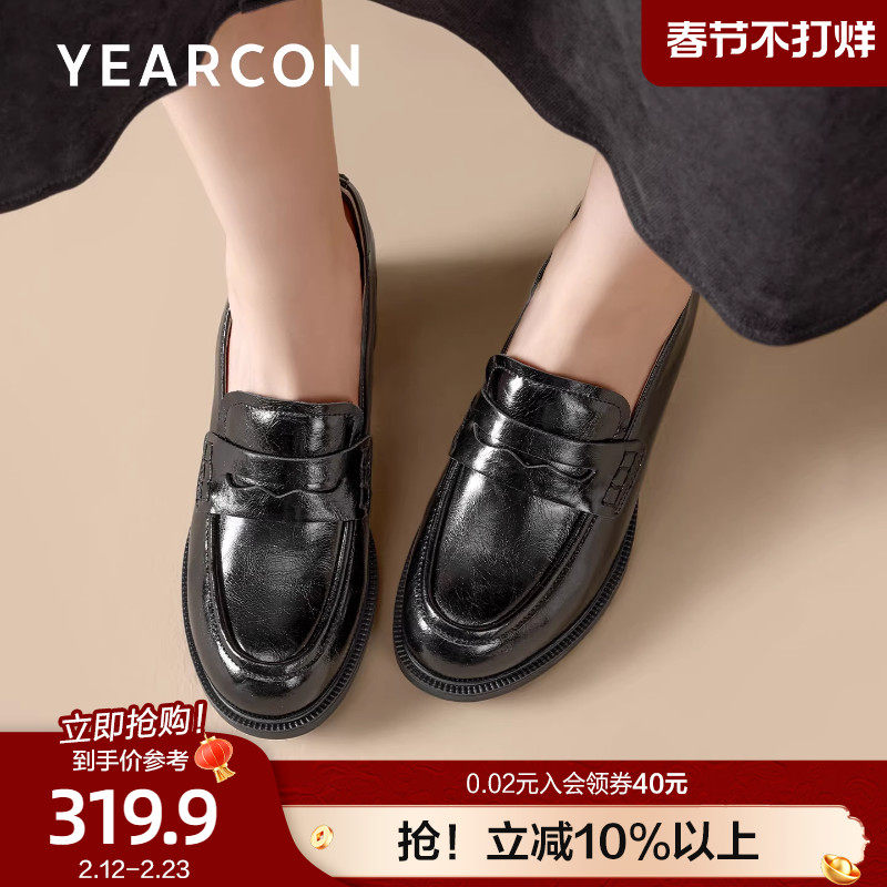 意尔康真皮高跟乐福鞋女2026款春秋学院风单鞋jk制服厚底小皮鞋