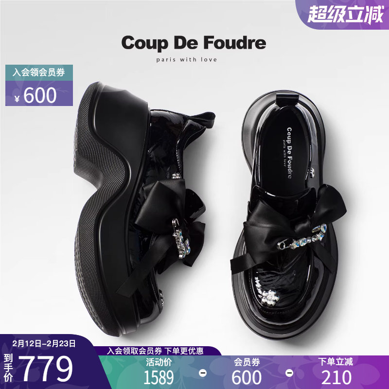 CDF女鞋2026春新款时尚英伦风厚底乐福鞋简约蝴蝶结学院风单鞋女