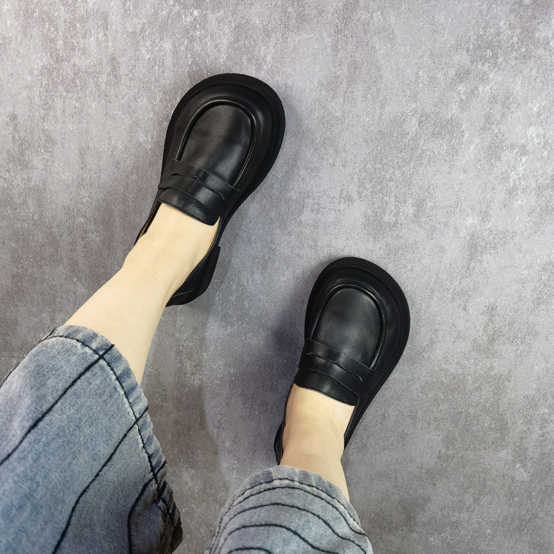 厚底真皮乐福鞋女新款圆头英伦风小皮鞋一脚蹬复古jk学院风单鞋女