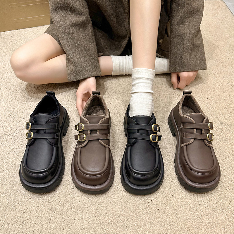 真皮厚底乐福鞋女2025秋冬新款百搭学院黑色单鞋加绒英伦风小皮鞋