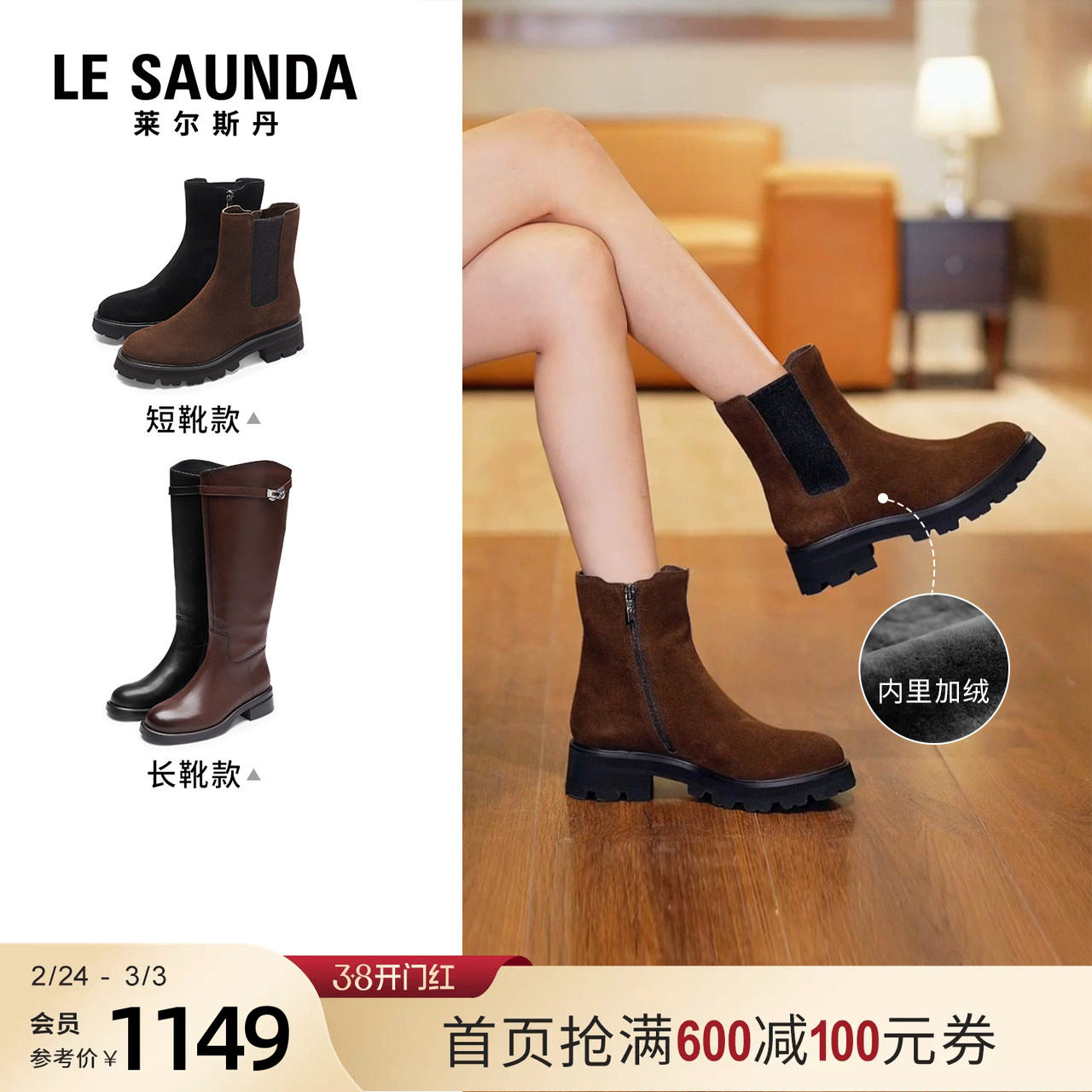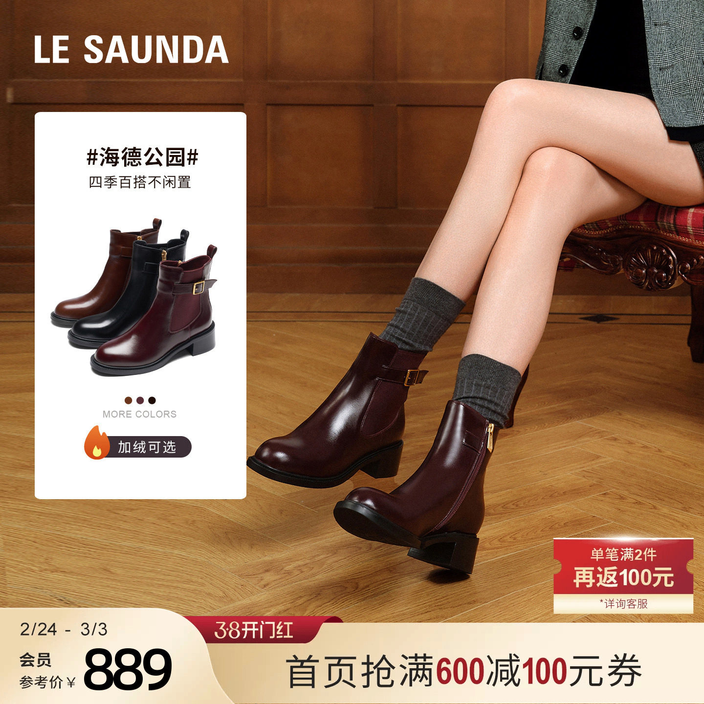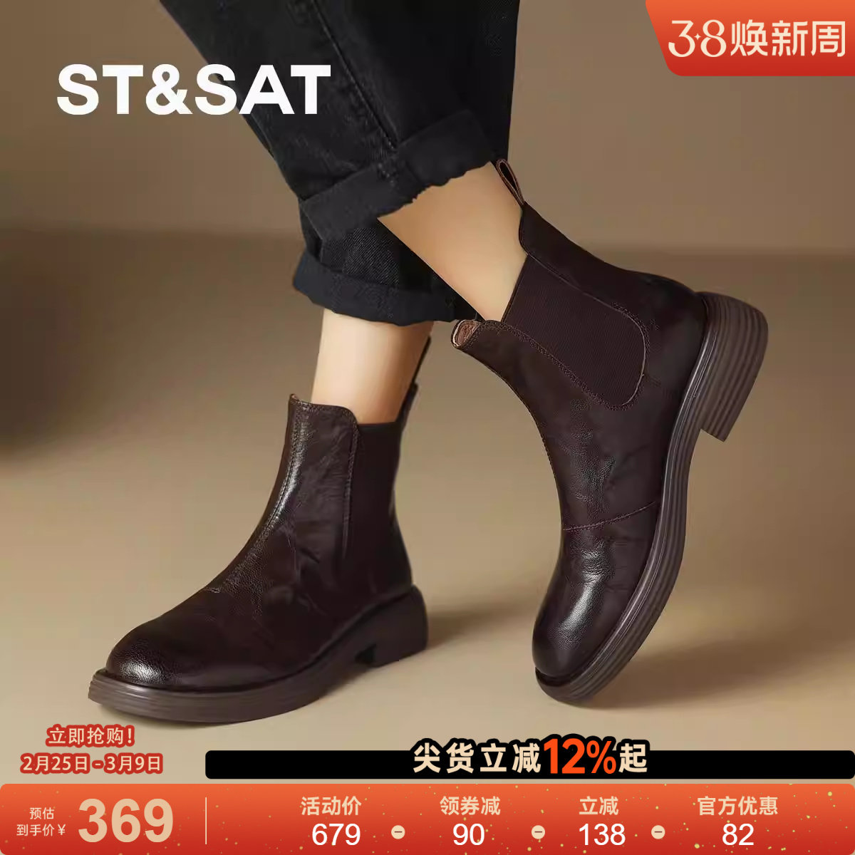 【羊皮加绒】星期六英伦风马丁靴2025秋冬圆头时尚中跟切尔西短靴