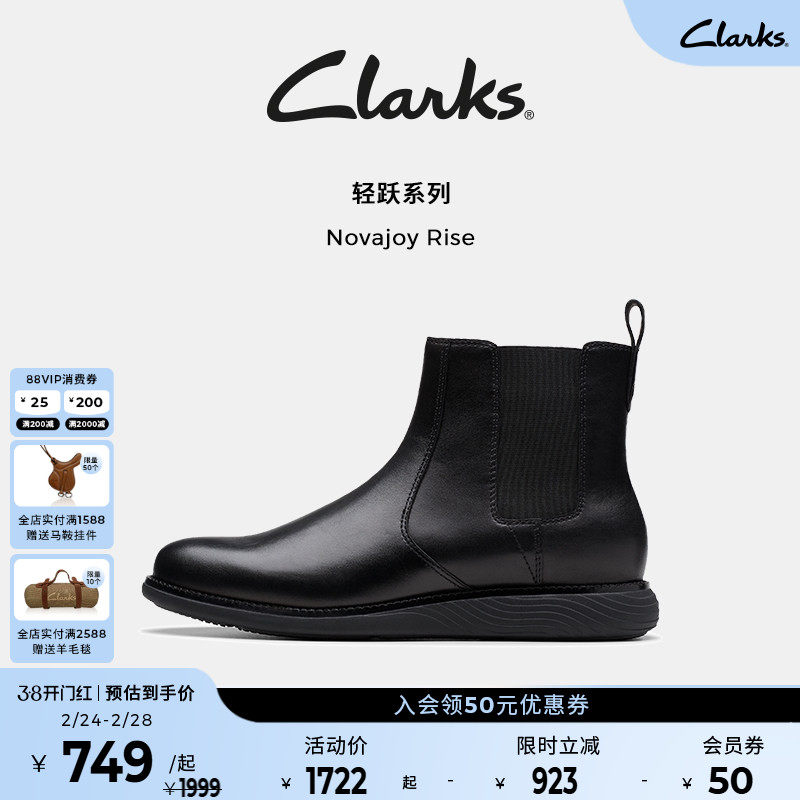 Clarks其乐Novajoy Rise男鞋秋冬牛皮革轻盈缓震英伦切尔西短靴男
