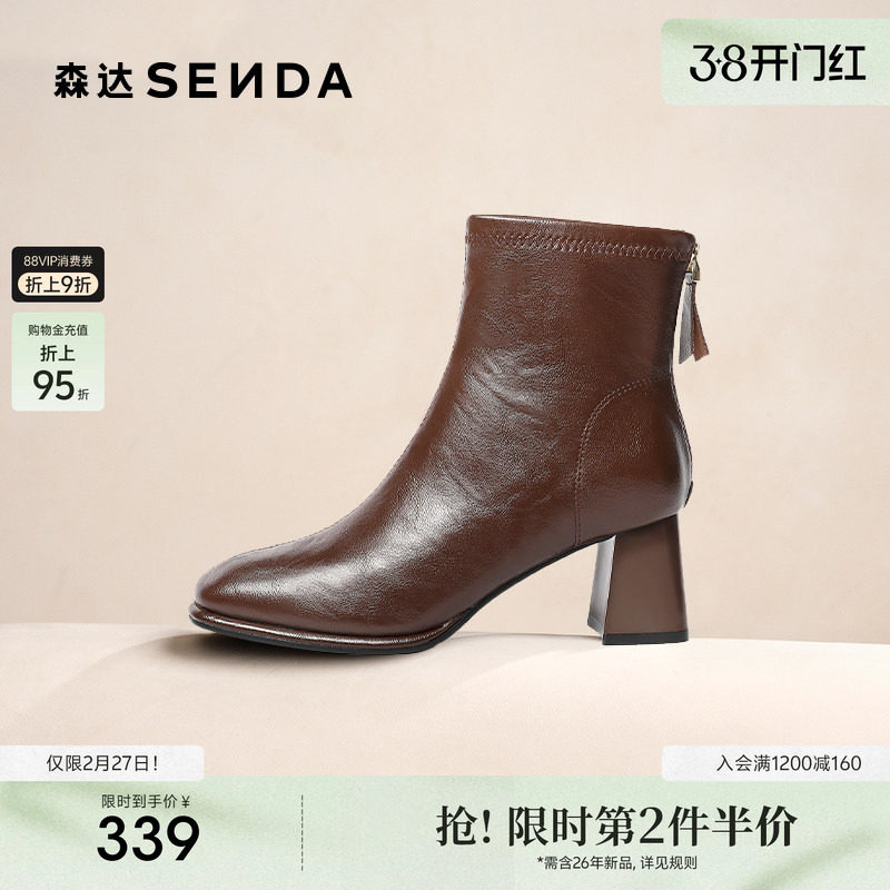 森达弹力瘦瘦靴2025新款商场同款气质粗高跟法式切尔西短靴XRR01