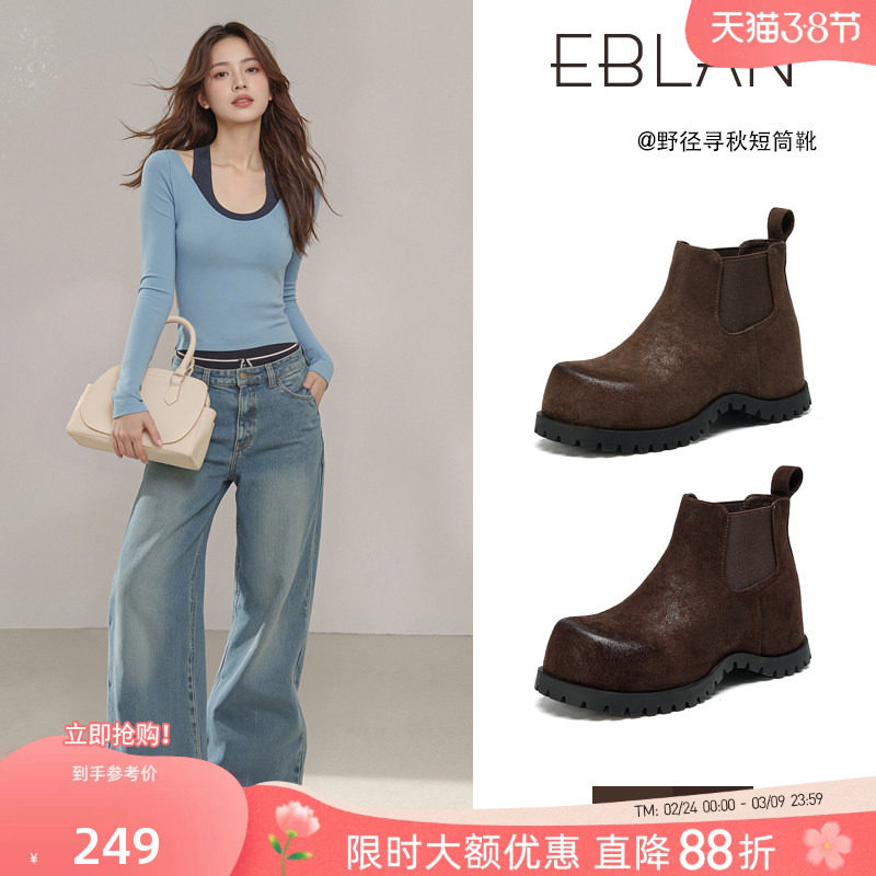 EBLAN/伊伴切尔西短靴女2025秋冬季新款加绒内增高马丁靴烟筒靴子