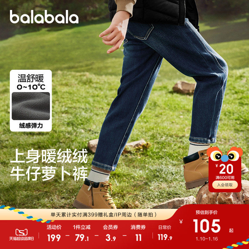巴拉巴拉男童牛仔裤中大童宝宝加绒裤子秋冬新款童装儿童萝卜裤厚