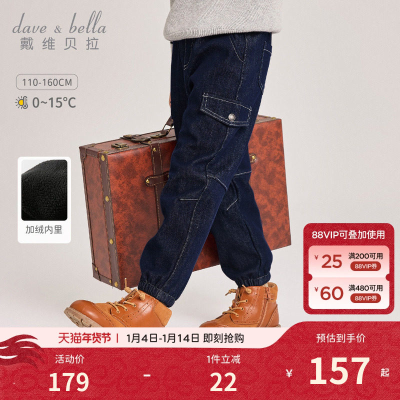 戴维贝拉儿童裤子2026冬装新款男童牛仔裤男宝宝加绒长裤休闲裤