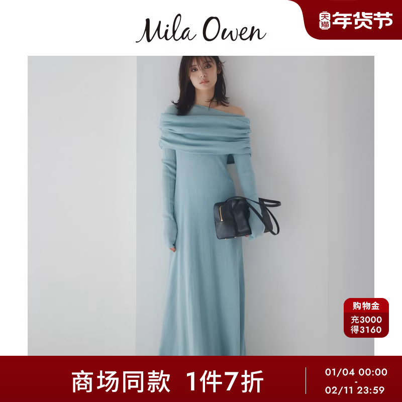 Mila Owen25秋冬新品优雅一字肩两穿针织长款连衣裙09WNO254020