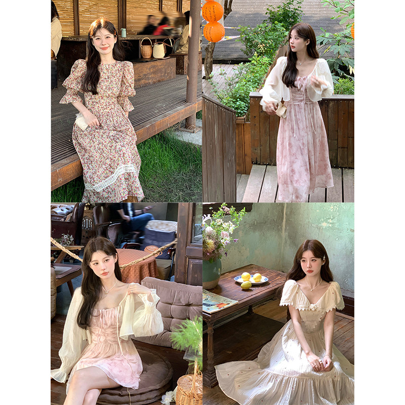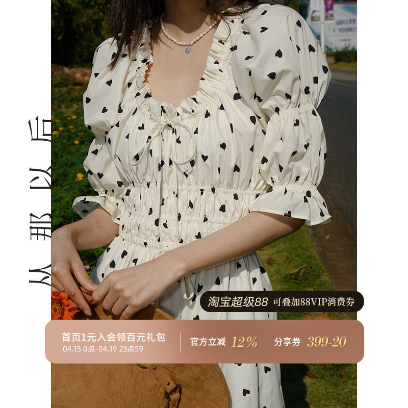 从那以后《安琪拉的周末》白色长袖连衣裙春款女装新款长裙碎花裙