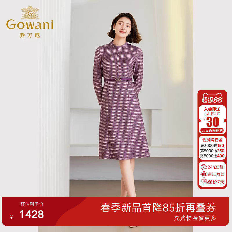 乔万尼2026春款连衣裙格纹印花小香风气质款气质中长款ET4E918