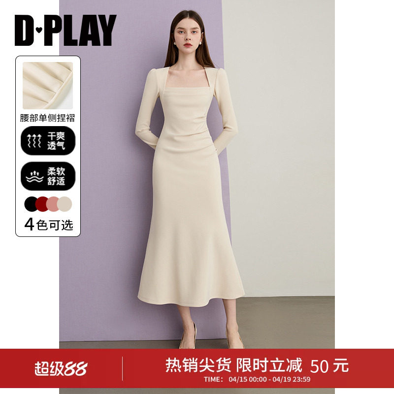 DPLAY白月光连衣裙米白色连衣裙女2026春款收腰法式礼服裙鱼尾裙