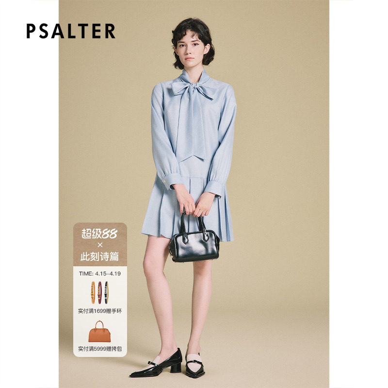 PSALTER诗篇高智职场修身桑蚕丝衬衫拼接羊毛连衣裙2025春款