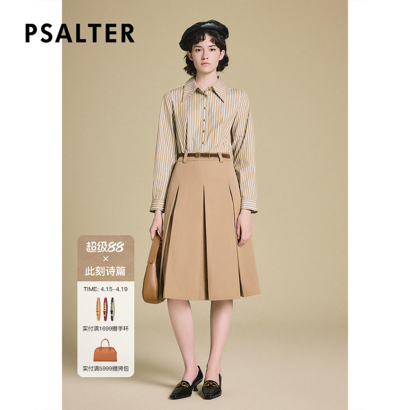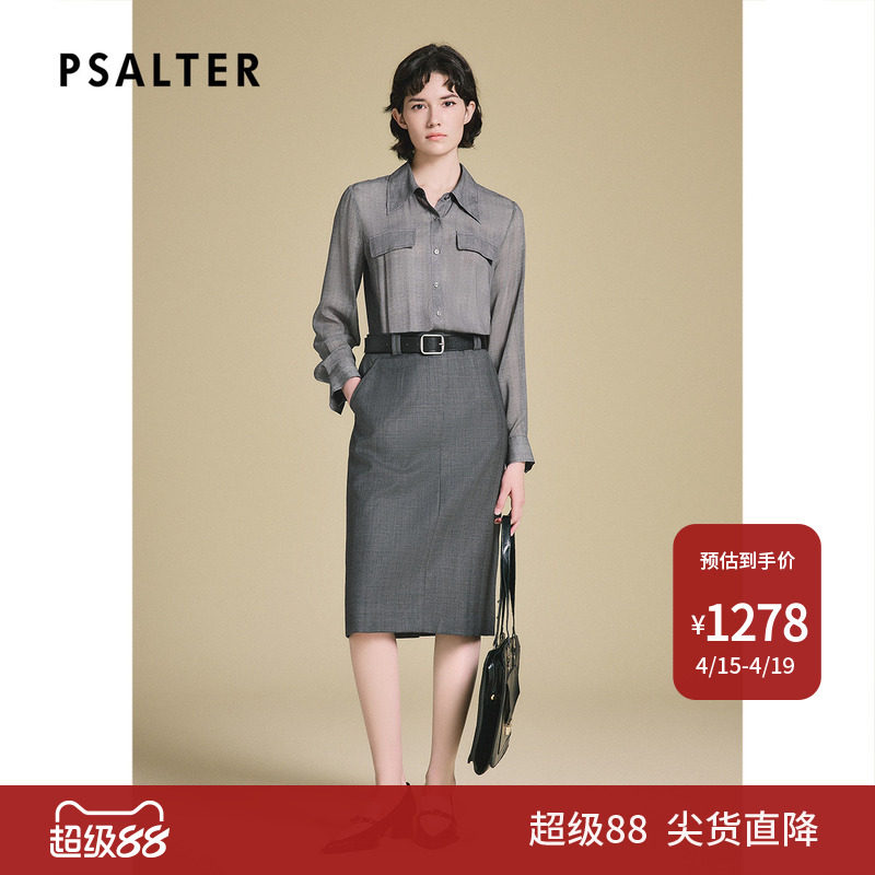 【春夏热卖】PSALTER诗篇暗纹提花衬衫拼接假两件羊毛连衣裙春款
