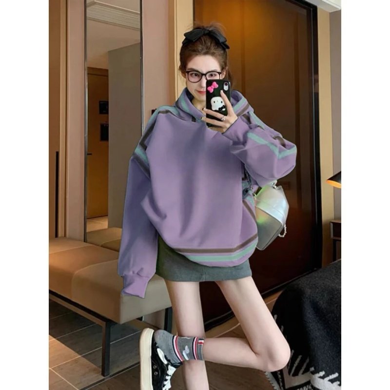 韩版紫色连帽卫衣女2025秋冬新款宽松显瘦百搭加绒加厚连帽卫衣女