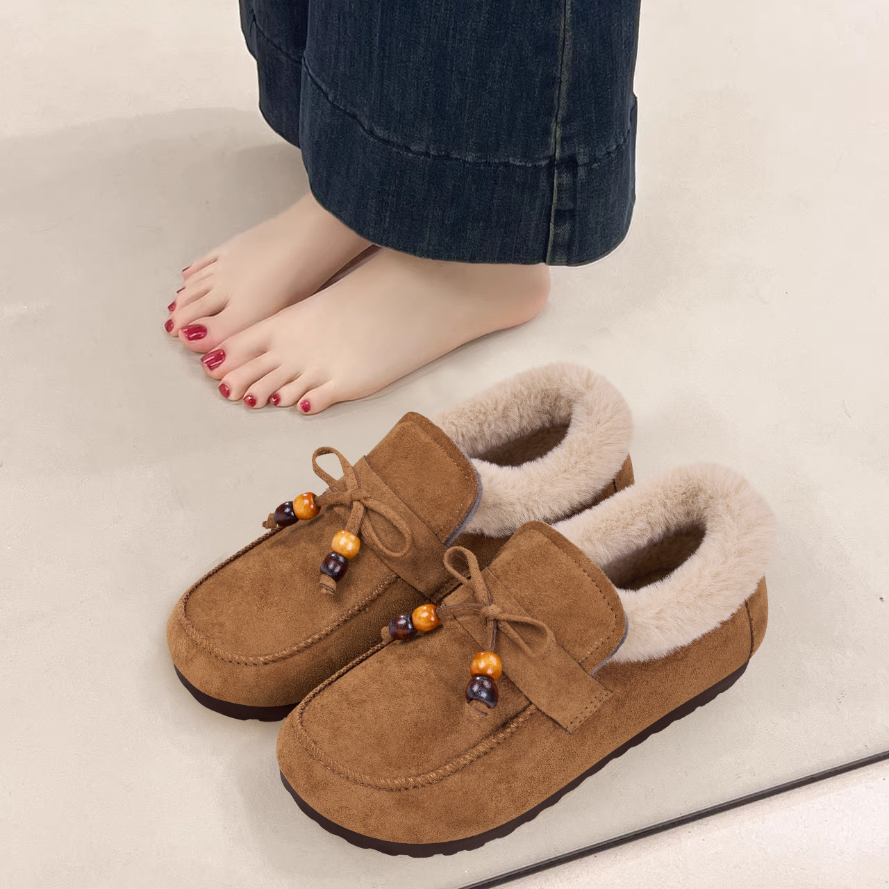 - 冬季豆豆鞋加绒女