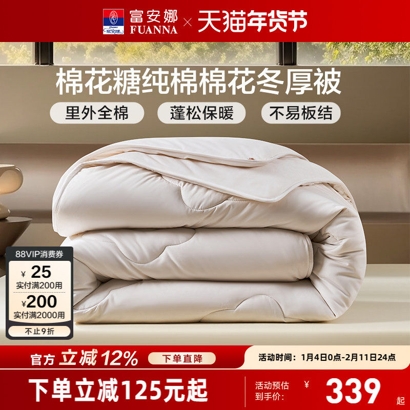 富安娜家纺100%棉花被全棉被子冬被芯纯棉絮四季被棉被褥加厚被