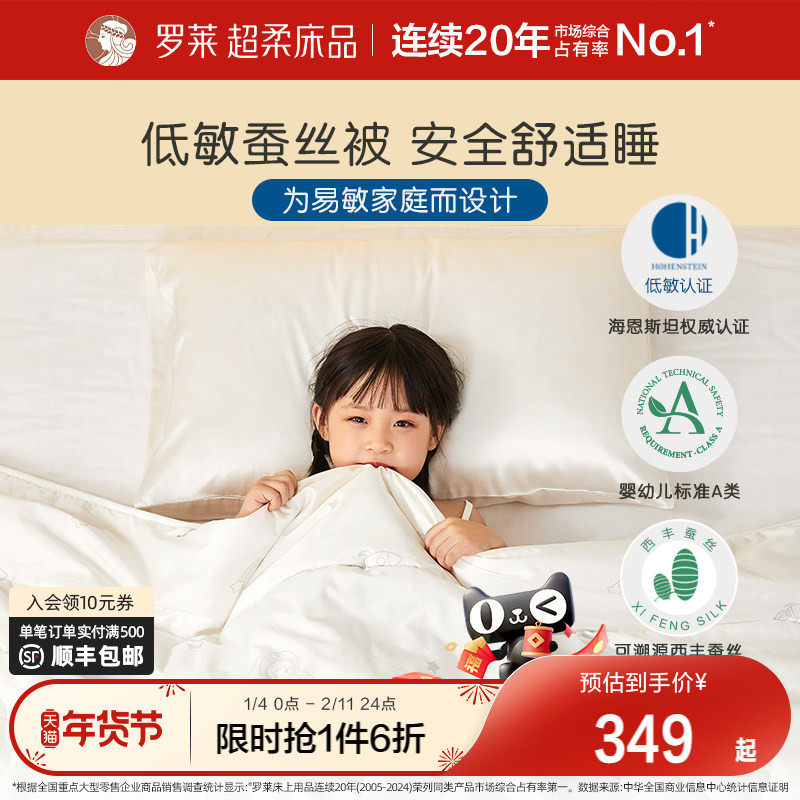 罗莱家纺儿童100蚕丝被加厚被全棉被子冬被春秋被二合一子母被芯
