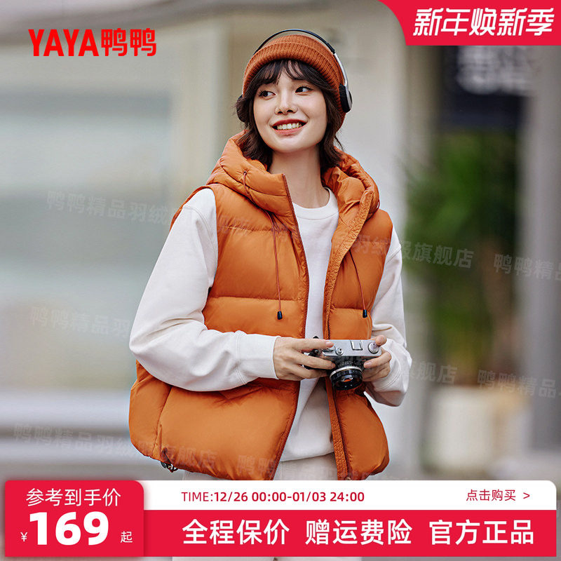 鸭鸭2025年秋冬新款羽绒马甲短款连帽时尚外穿背心马夹宽松韩版潮