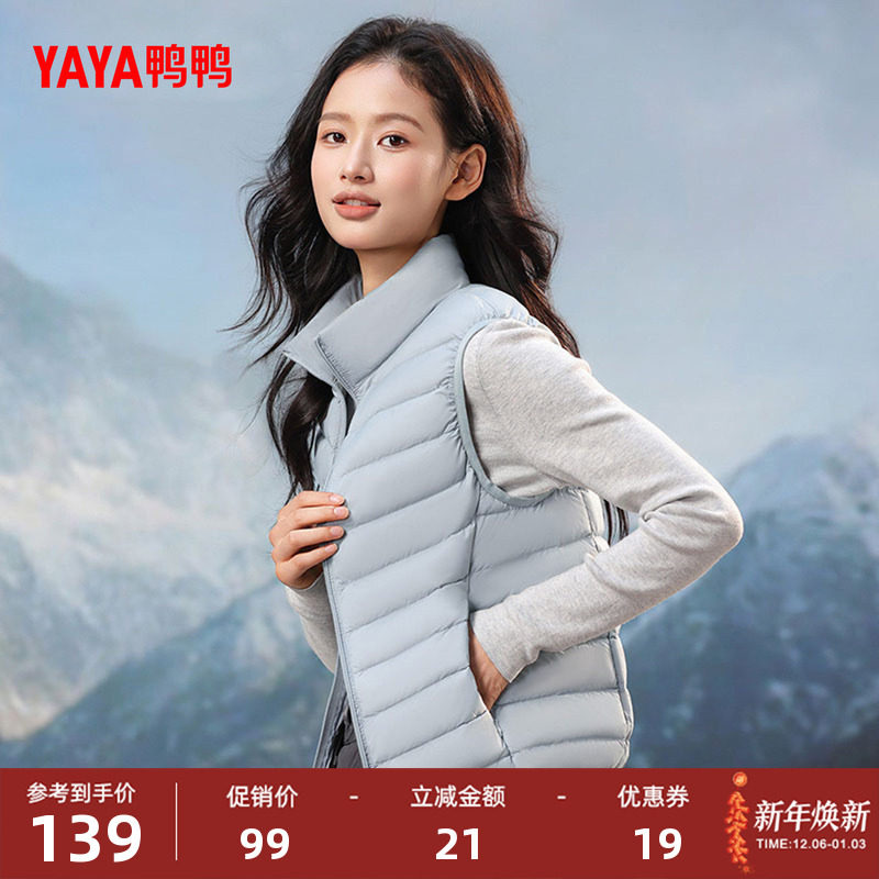 鸭鸭轻薄羽绒服马甲女短款冬季反季立领韩版气质鸭绒背心马夹外套