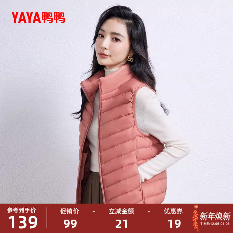 鸭鸭羽绒服马甲女2025年秋冬新品轻薄短款立领韩版休闲保暖马夹D