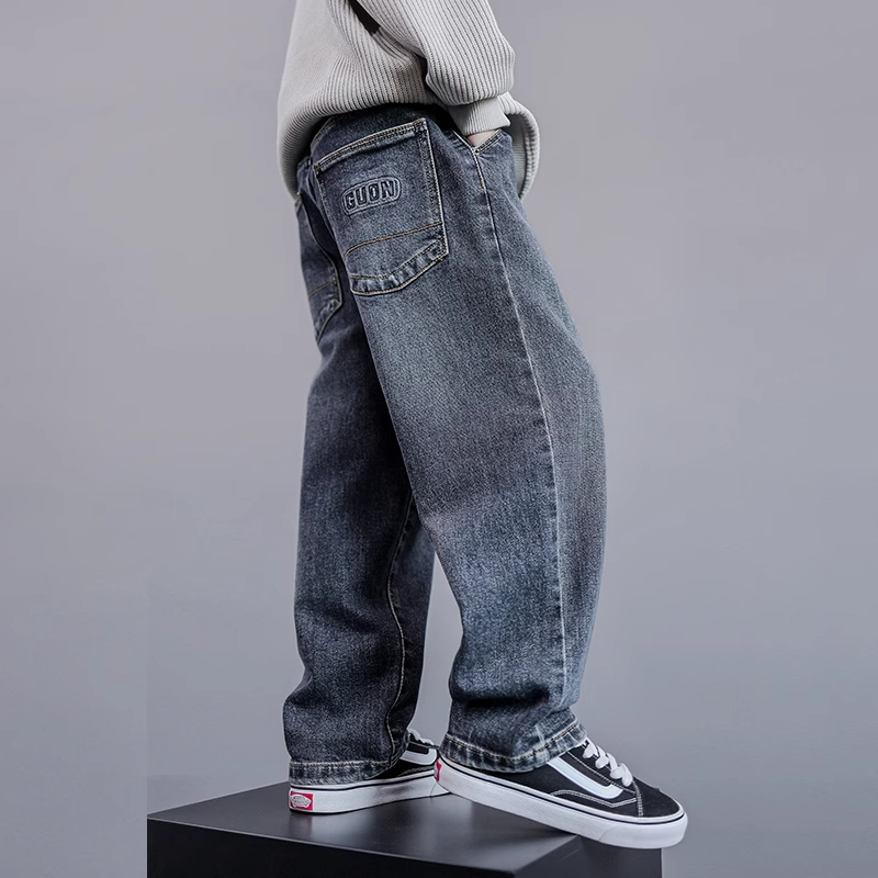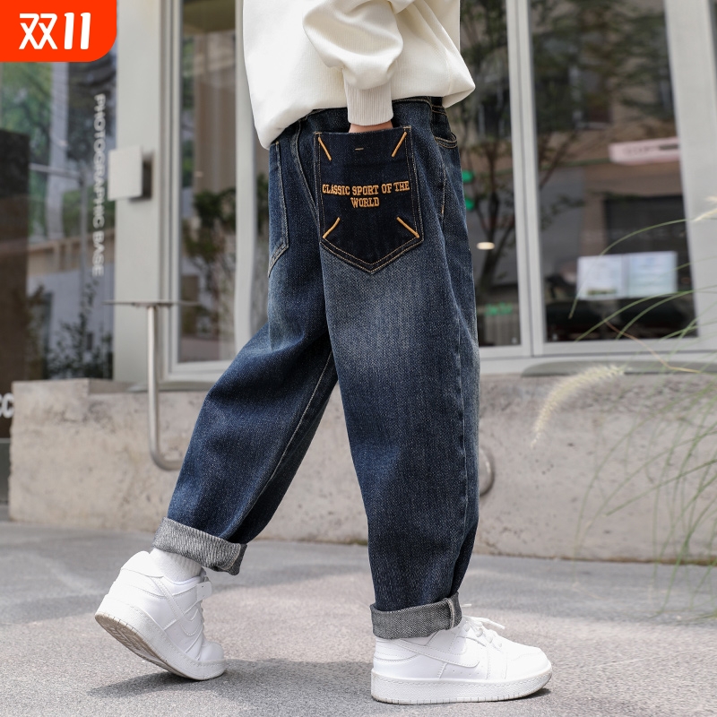 男童裤子秋冬款2025新款中大童儿童春装牛仔裤男孩冬季阔腿裤宽松