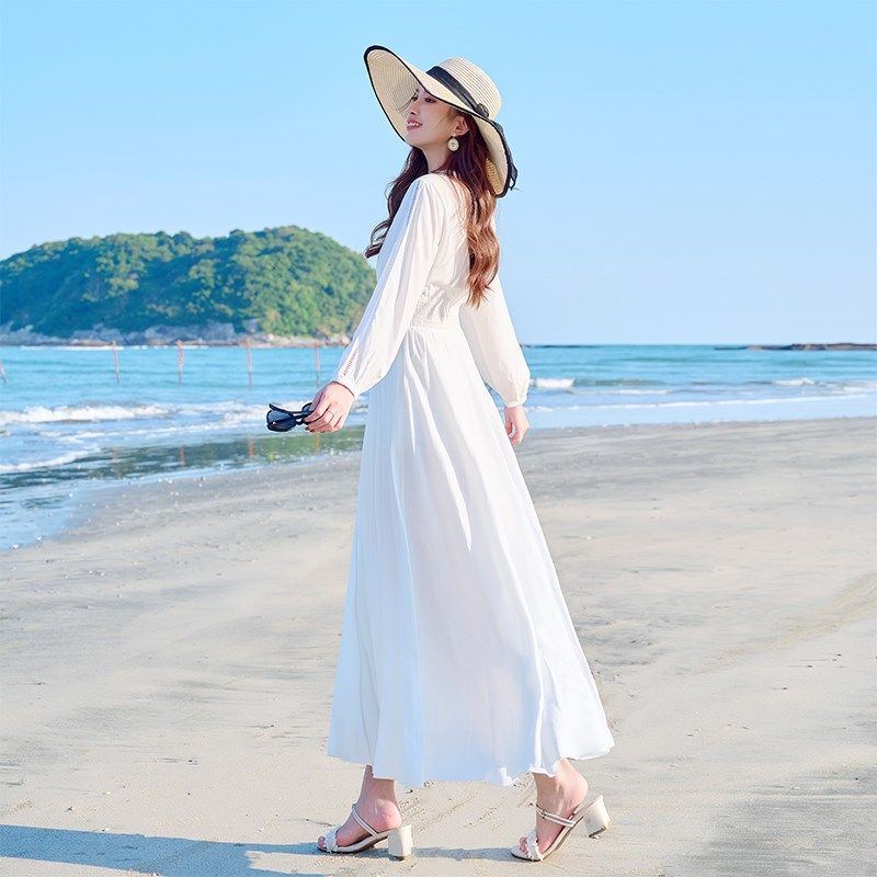 白色连衣裙2024新款法式仙女气质长裙子旅游穿三亚海边渡假沙滩裙