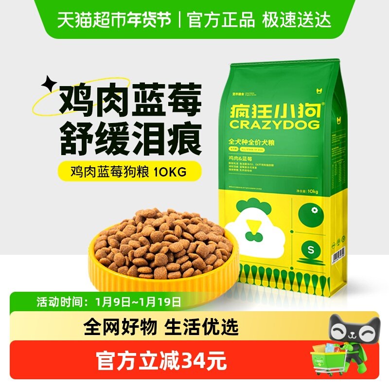 疯狂的小狗狗粮鸡肉蓝莓20斤泰迪比熊博美小型成犬幼犬通用型10KG