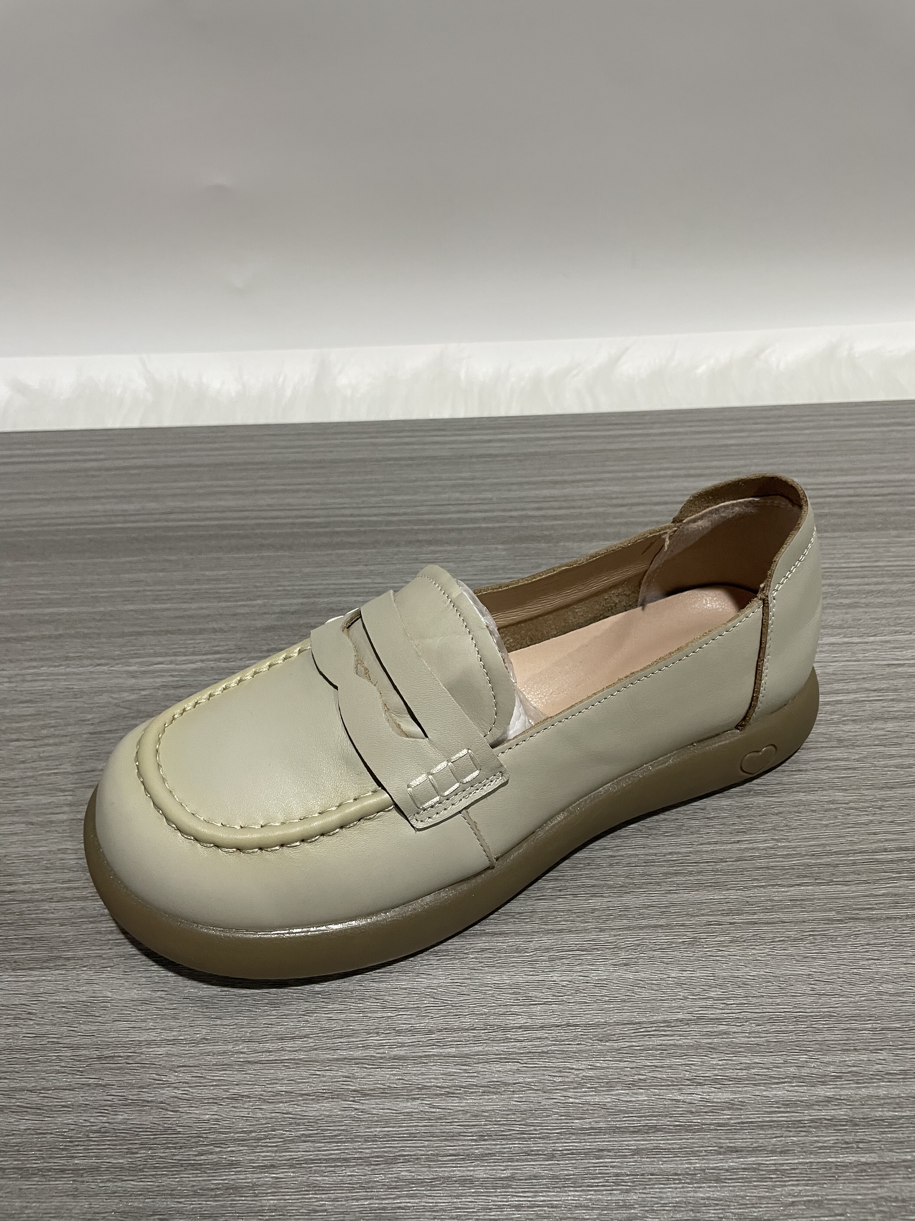 2025春秋新款特价断码真皮圆头平底休闲套脚英伦风时尚浅口女单鞋