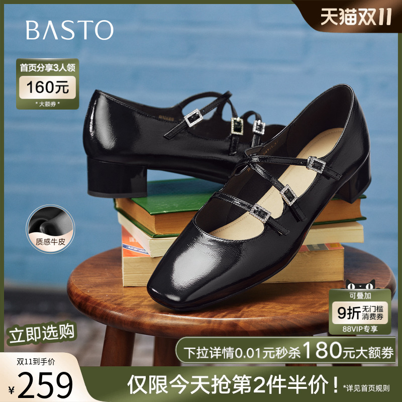 百思图2025秋季新款玛丽珍鞋时尚复古法式方头浅口女单鞋F5032CQ5