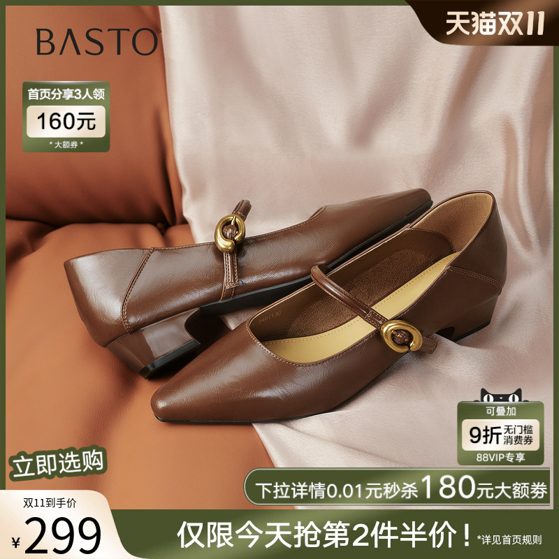 【转运珠】百思图2025春商场新款玛丽珍鞋粗跟浅口女单鞋M1109AQ5