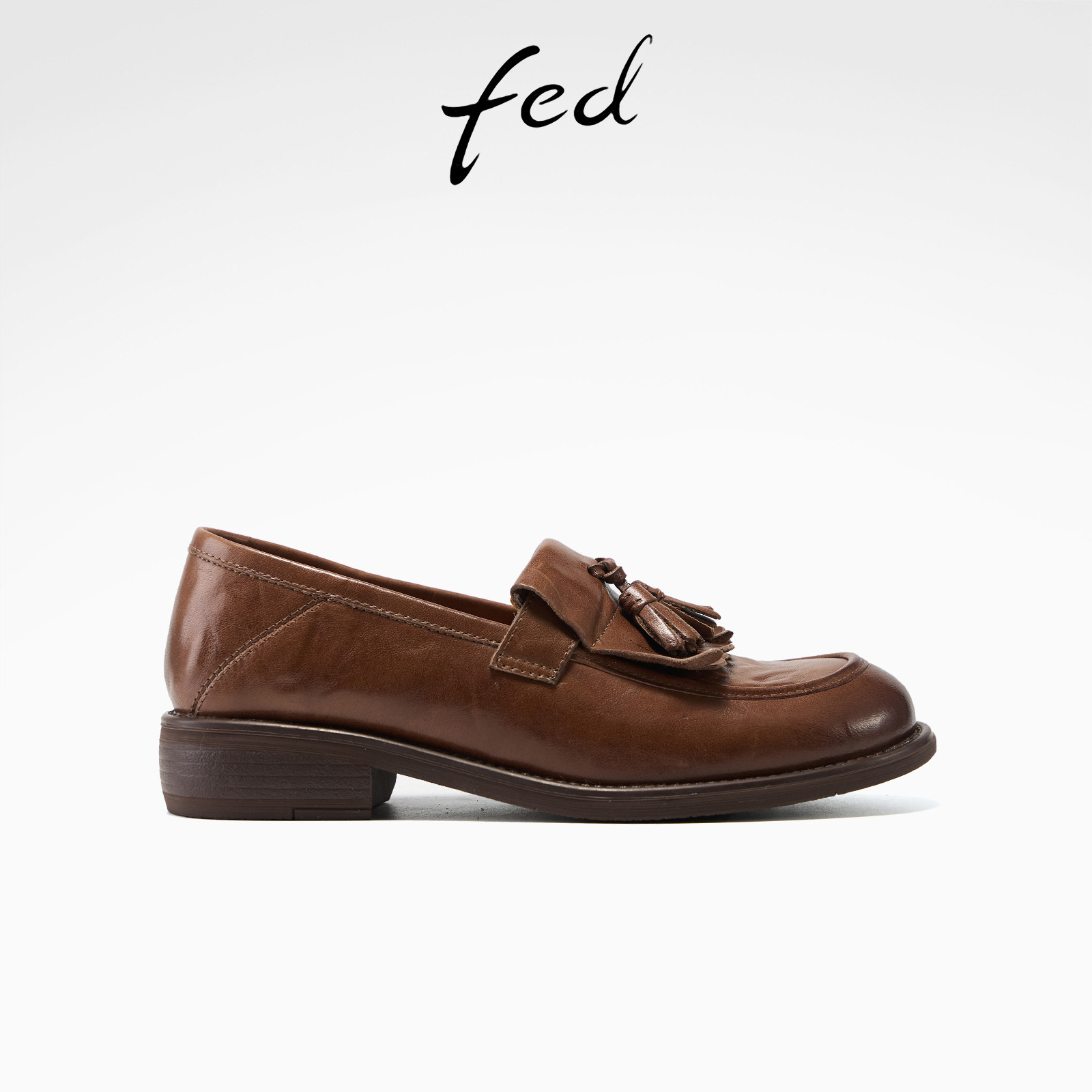 fed真皮法式单鞋春季新款女鞋白色高跟鞋粗跟单鞋女D0224-ZCB215