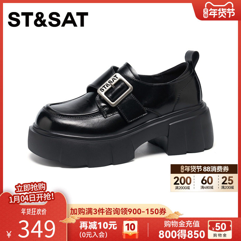 星期六厚底乐福鞋女2025秋季新款英伦风小皮鞋百搭增高粗跟单鞋女