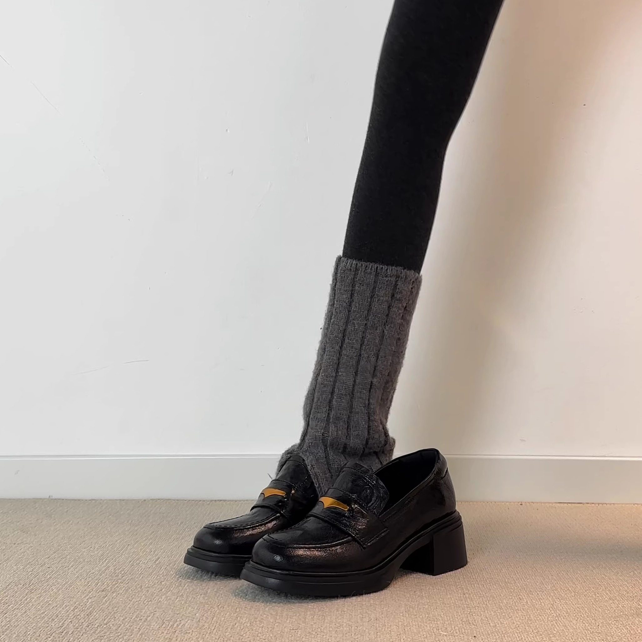英伦风小皮鞋女2025新款秋冬百搭一脚蹬粗跟jk单鞋圆头厚底乐福鞋