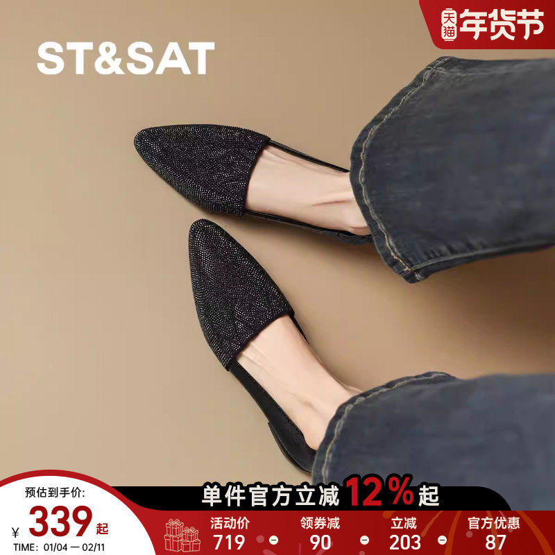 星期六粗跟单鞋女2025新款尖头中口平底气质百搭外穿不累脚通勤鞋