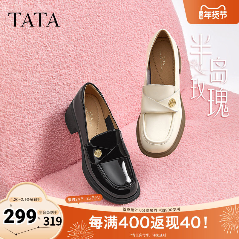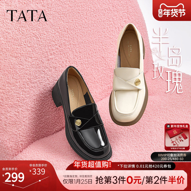 Tata他她奥莱气质粗跟单鞋女鞋白英伦乐福鞋小皮鞋2025秋7A520CA4