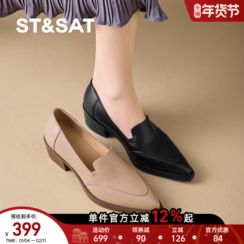 思加图2026新款许愿币英伦风乐福鞋小皮鞋粗跟单鞋女EOQ15AA6
