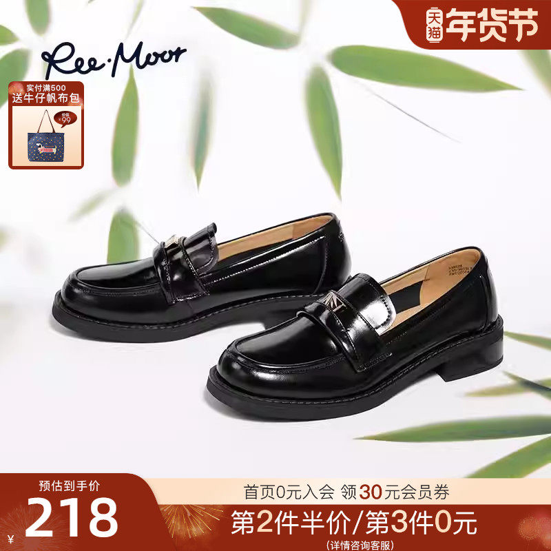 华耐2025春秋季乐福鞋女厚底增高女百搭一脚蹬JK制服粗跟单鞋女鞋