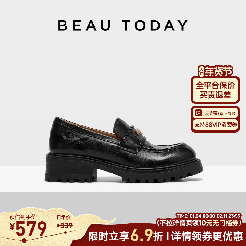 BeauToday厚底乐福鞋女款BT黑色英伦风小皮鞋女士粗跟单鞋女鞋子
