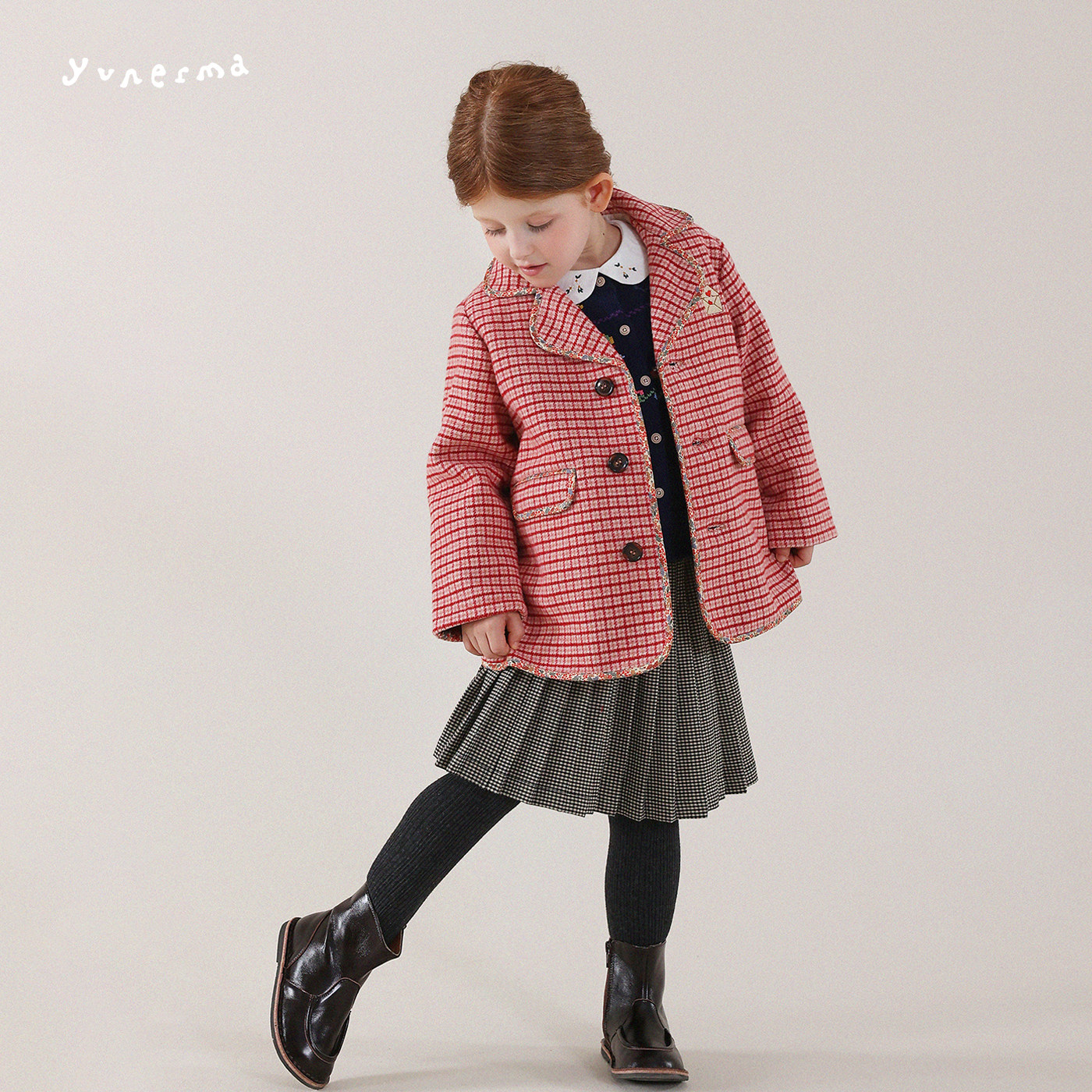 允儿妈女童冬季新款小众复古格子大衣女孩秋冬毛呢外套儿童风衣潮