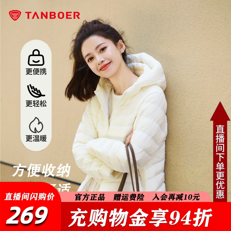 坦博尔运动羽绒服女款排骨羽绒户外轻薄短款连帽外套女士内胆秋冬