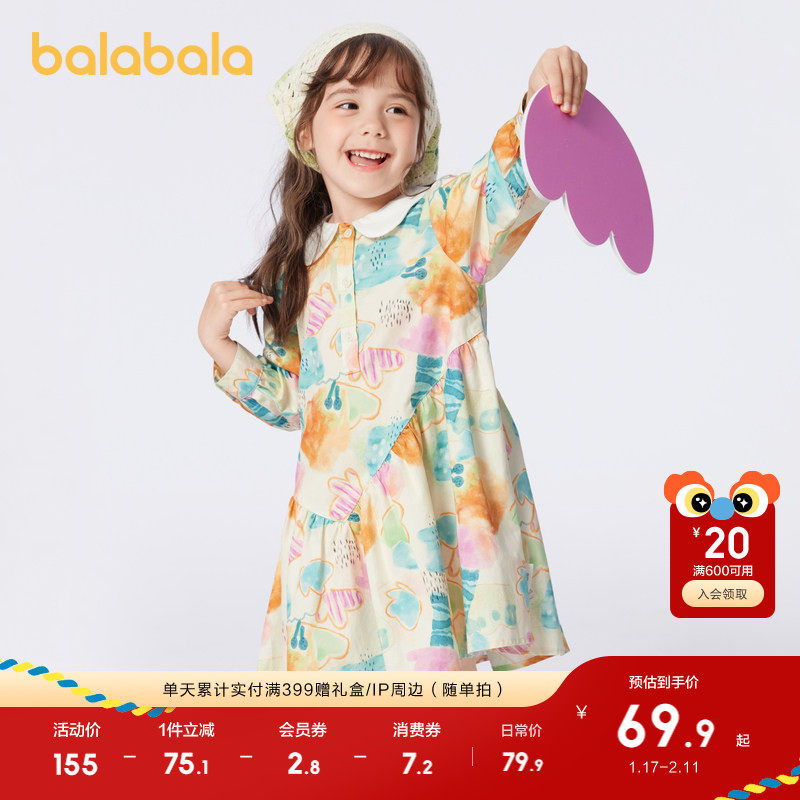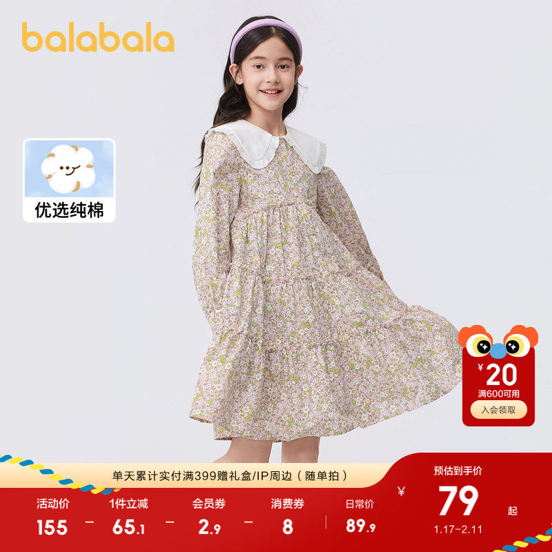 巴拉巴拉儿童公主裙春秋装学院童装女童纯棉连衣裙大童潮时尚文艺